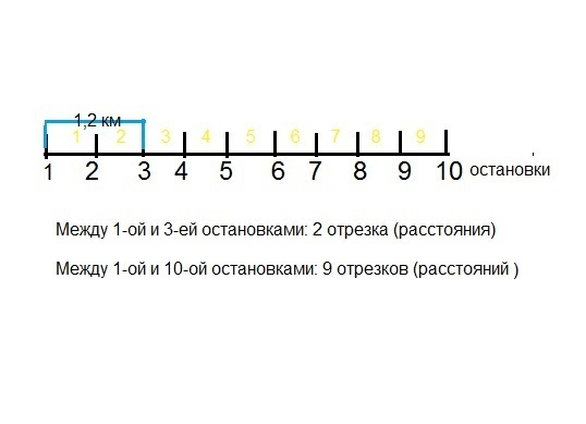 ОТВЕТ: расстояние между первой и десятой остановками равно 5,4 км.