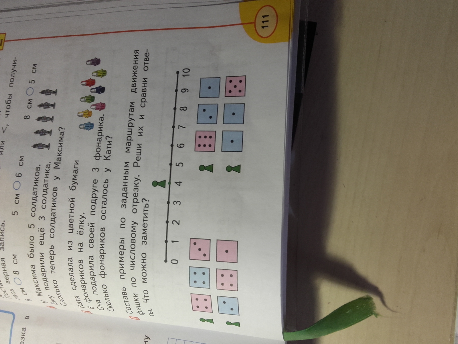 составь примеры по заданным маршрутам движения фишки по числовому отрезку.Реши их и сравни ответы.Что можно заметить?