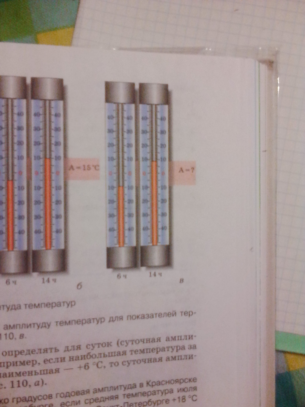 определите суточную амплитуду температур для показателей термометров на рисунке 110,в