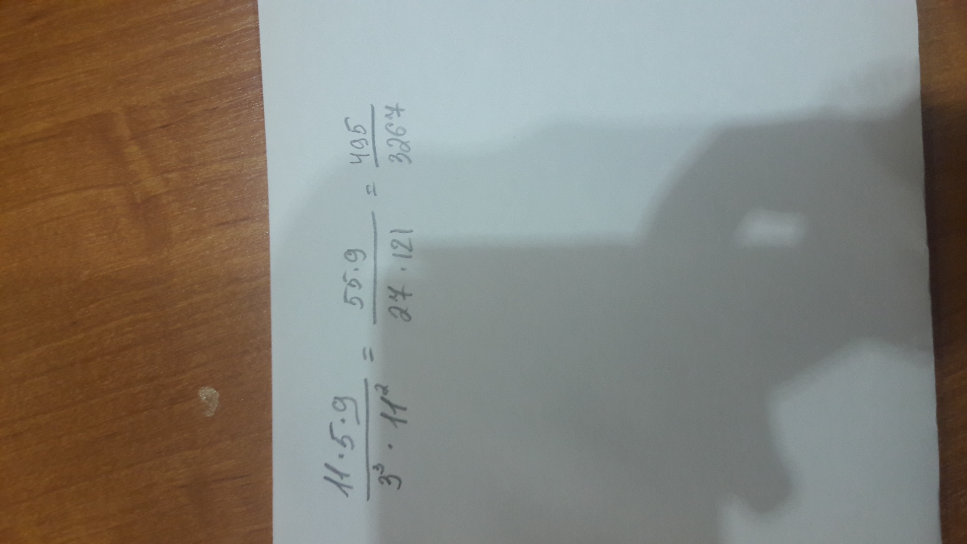11×5×9/3 в кубе ×11 в квадрате =сокращаем 11 получаем 5×9/27×11=сокращаем 9 и 27 и получаем 5×1/3×11=5/33