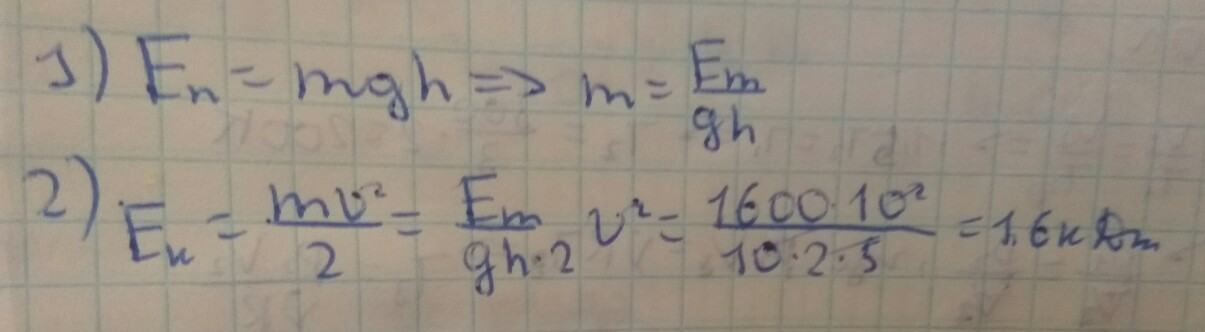 Помогите решить! Тело падающее с высоты 5 м упало на землю со скоростью 10 м/с Определить кинетическую энергию тела при подлёте к земле если потенциальная энергия вначале полёта была равна 1,6 КДж