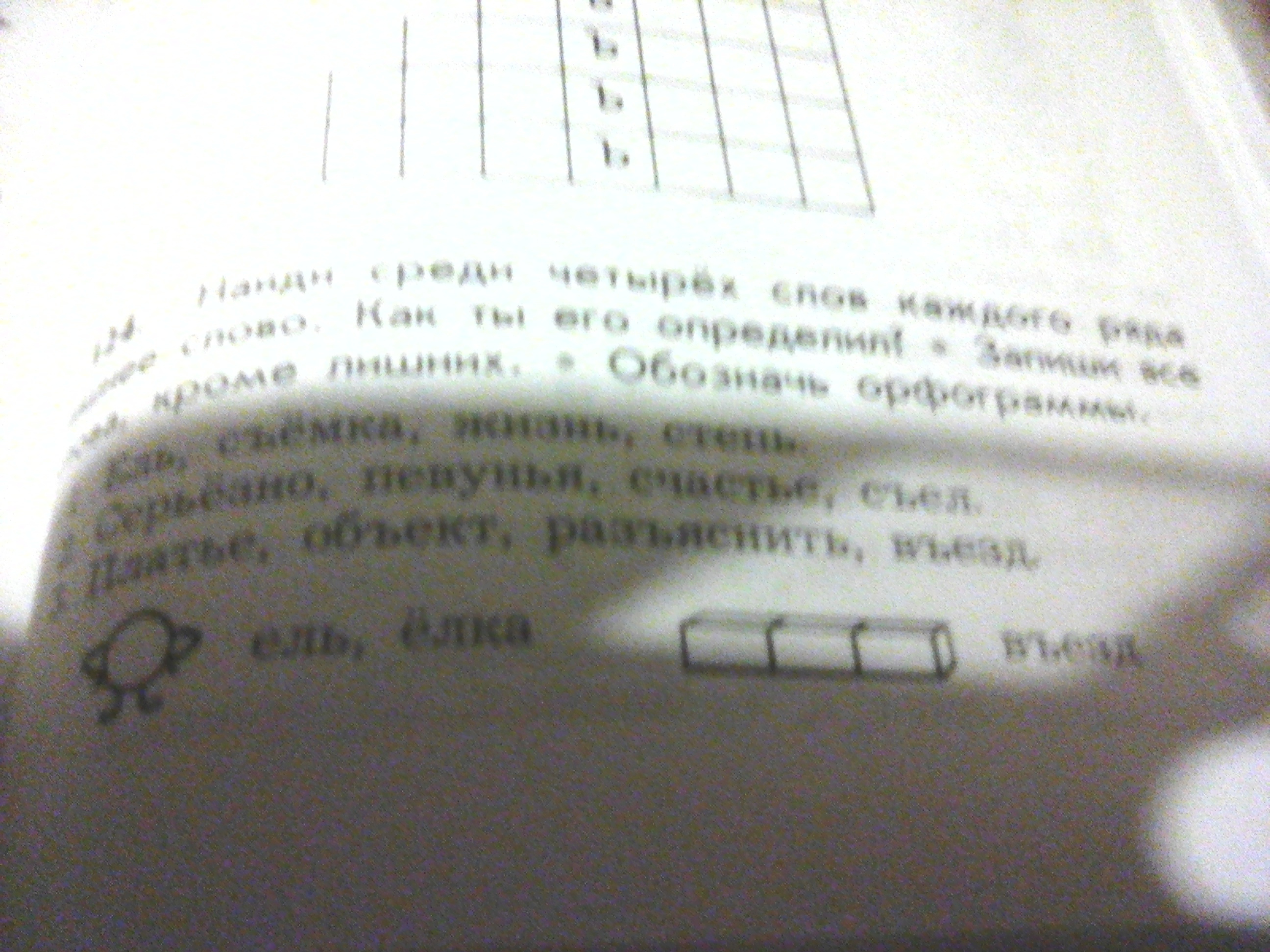 1. Лишнее слова съёмка, ибо в отличие от остальных имеет не мягкий, а твёрдый знак.