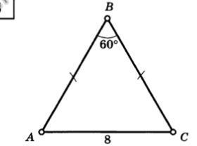 1. Проведём к основанию АС высоту ВН. Так как ΔАВС равнобедренный по условию, то ВН является и медианой, и высотой, и биссектрисой. Значит ∠НВС = 30 градусов. АН=НС=4