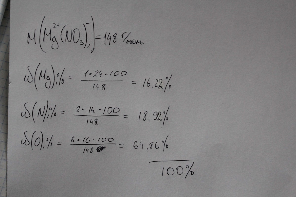 Ответ: W(Mg) = 16,2%, W(N) = 18,9%, W(O) = 64,9%