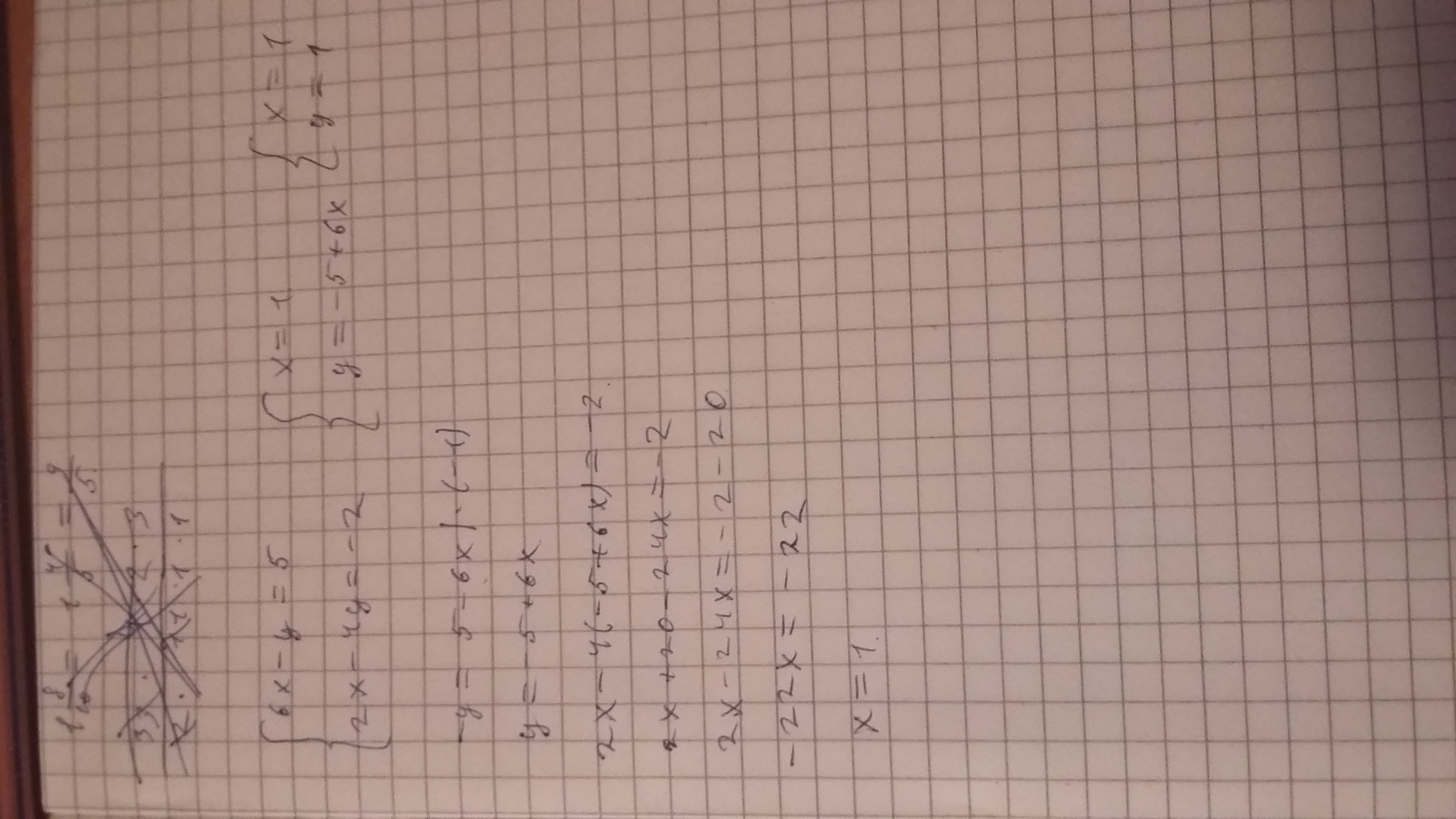 1) {6х-у=5