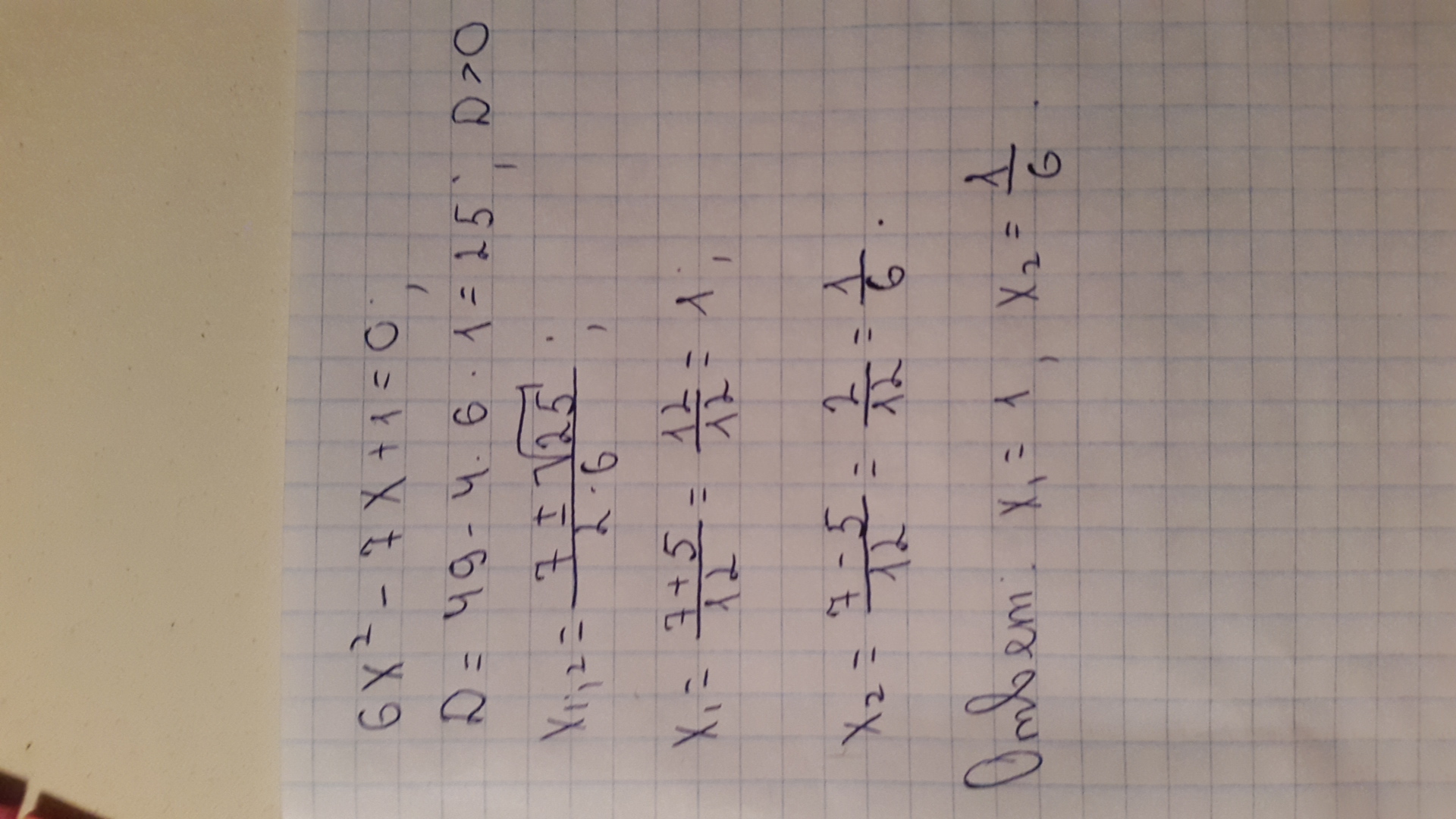 6х^2-7х+1=0