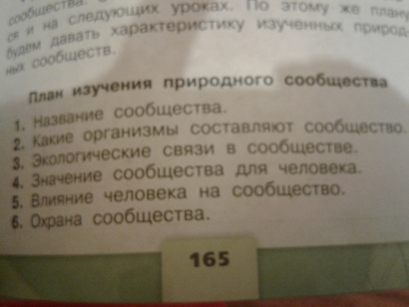 Например сообщество лес. В нём много разных организмов медведь олень лось заяц лиса волк ворона кабан хомяк полёвка рябчик куропатка глухарь. Растут деревья ель сосна дуб клен липа ясень вяз. Заяц питается корой деревьев. Волк и медведь едят зайцев. Медведь-шатун может завалить оленя. Олень с лосем питаются травками. Человек убивает животных, чтобы их съесть, рубит деревья для строительства. В лесах есть реки, которые очень нужны для животных и людей. Люди пытаются сохранить редких животных и редкие растения.