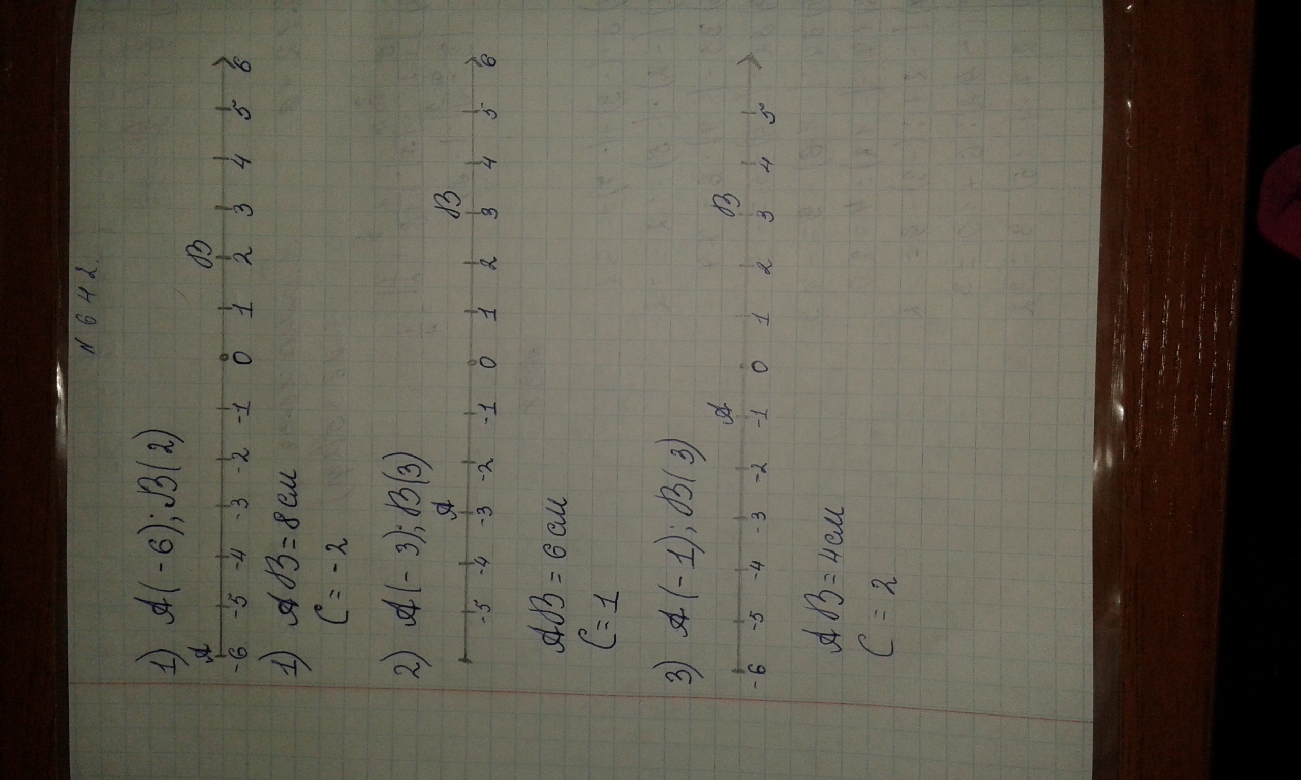 на координатной прямой с единичным отрезком 1 см отметьте точки A и B :1 ) A (-6); B (2); 2) A (-3);В(3); 3) А(-1);В (3)