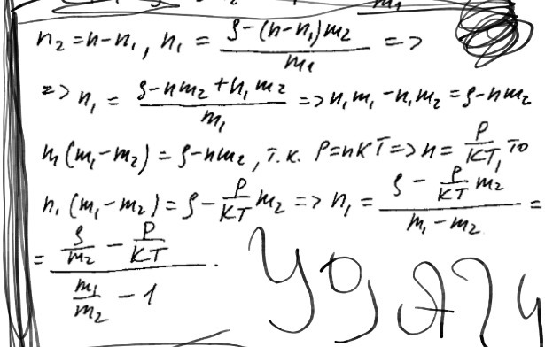 Общая масса смеси m=√,m1+N2m2=n,vm,+n2Vm2.Где n и n2