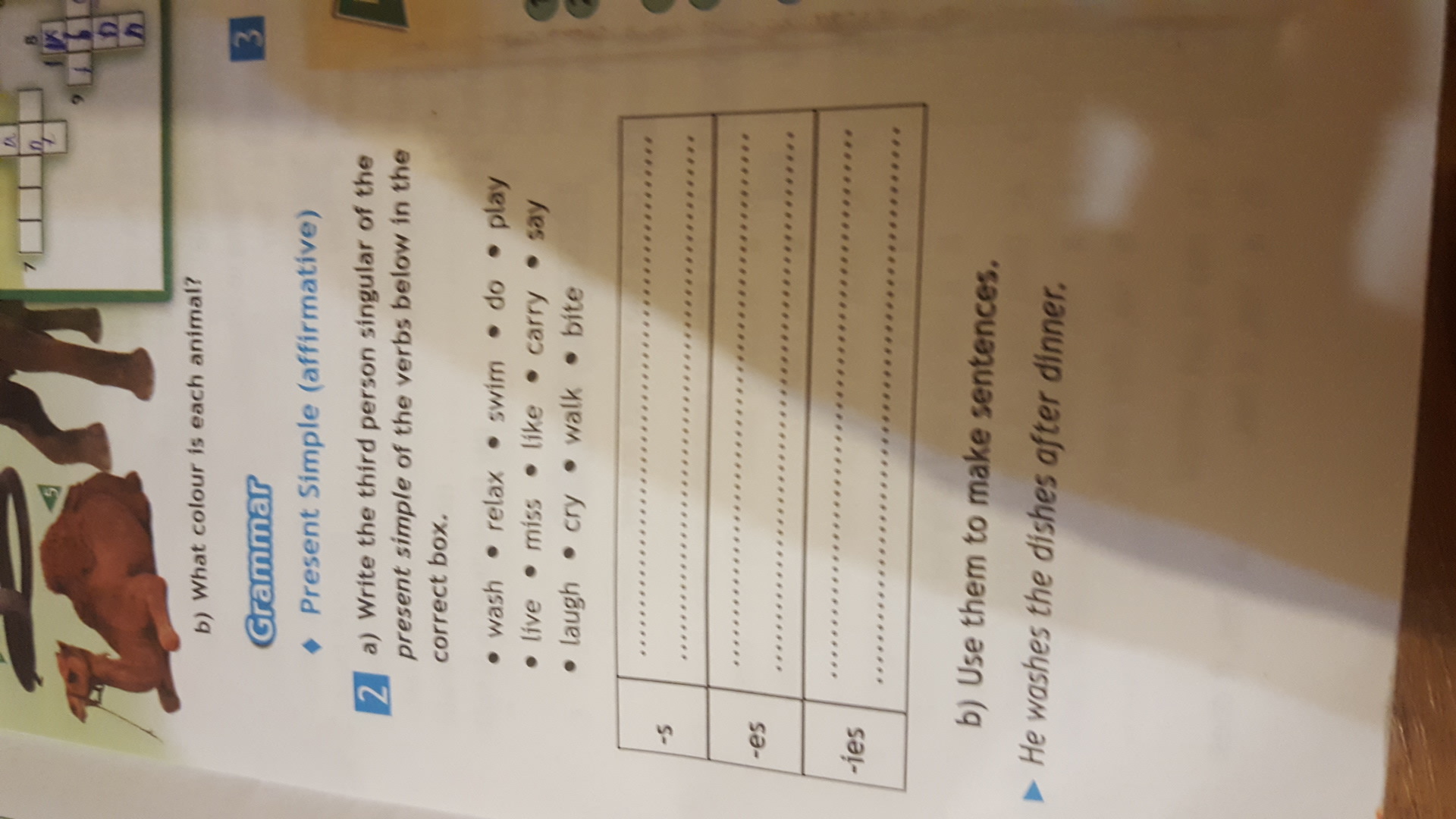 -es: live, like, bite, wash, relax, do, laugh, miss
