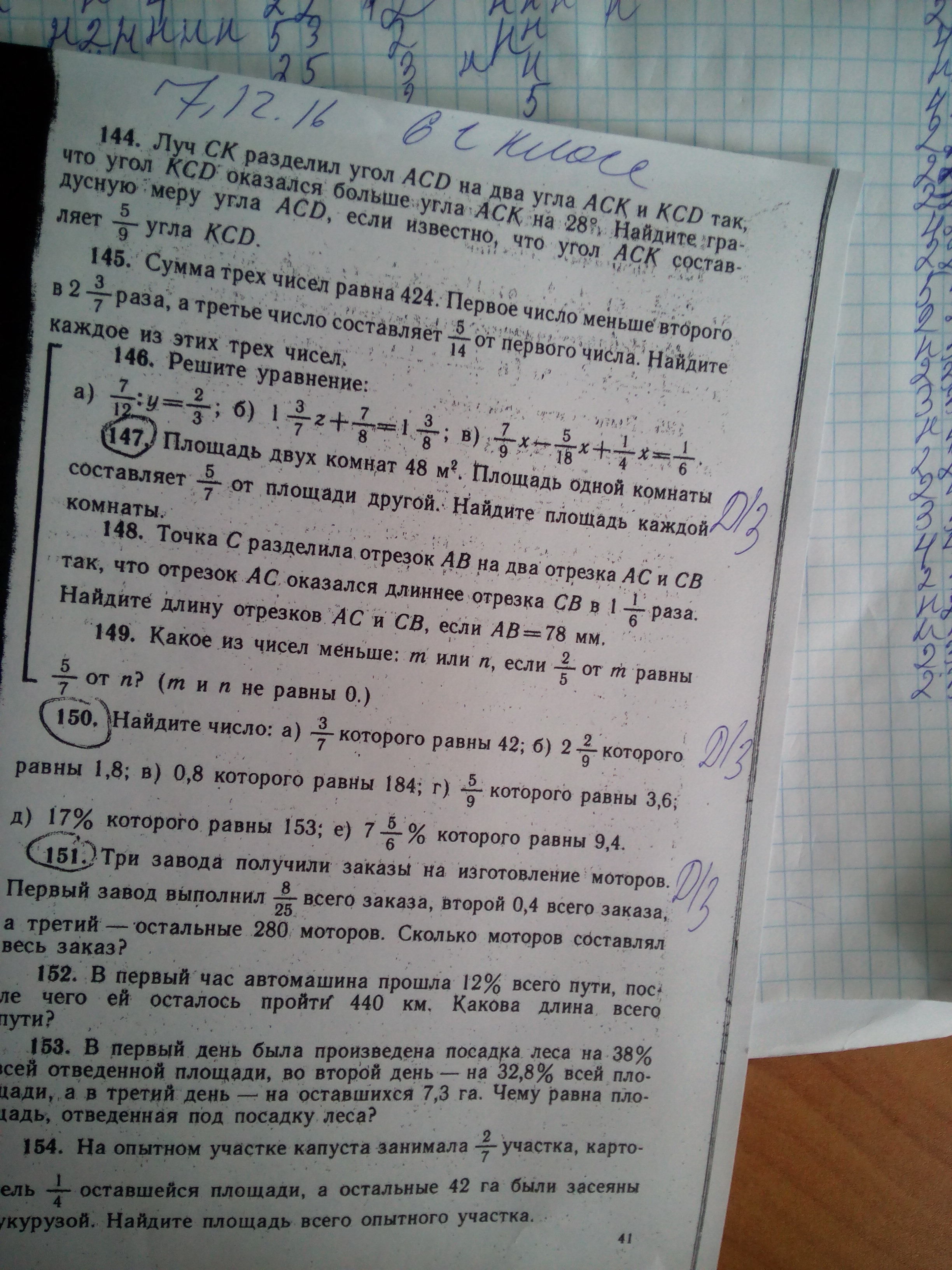 147. Пусть x=площадь второй,площадь первой 5/7xСоставим уравнение: