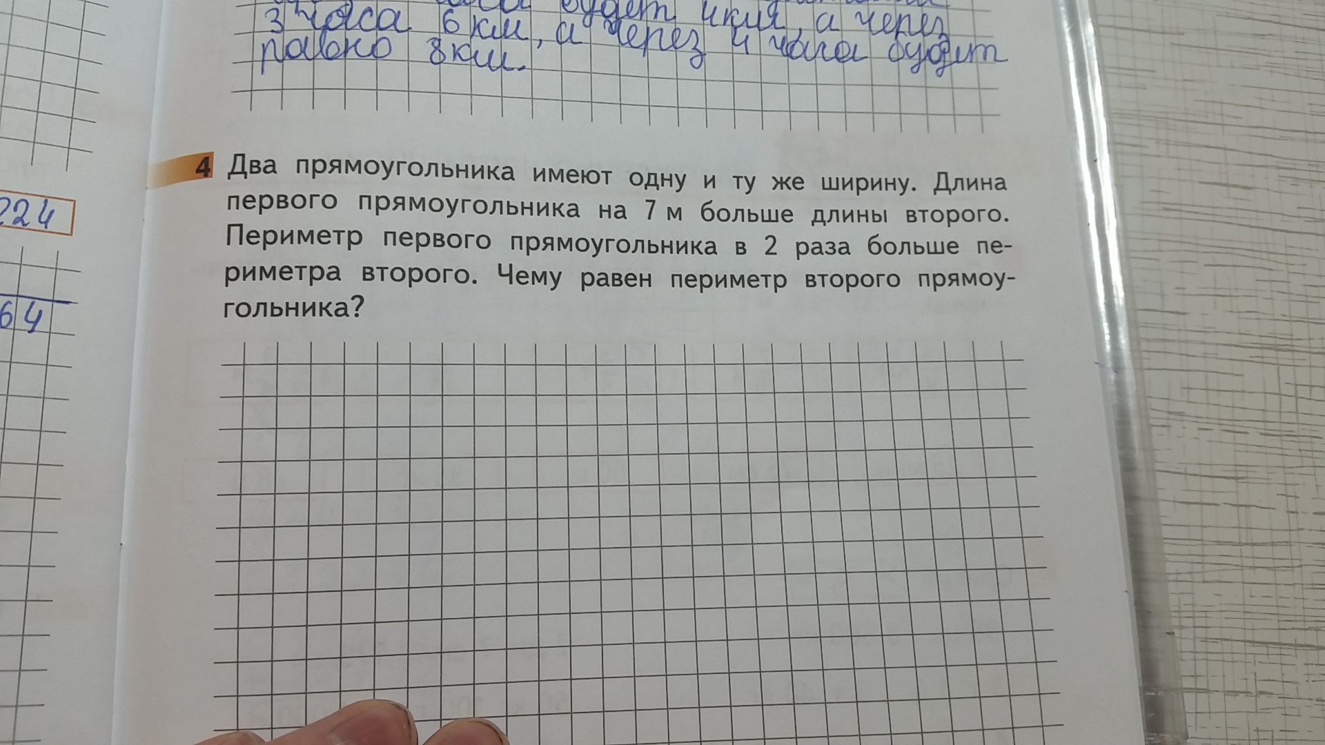 1) Выразим периметр первого прямоугольника Р1=(b1+a1)×2=(b2+a2+7)×2
