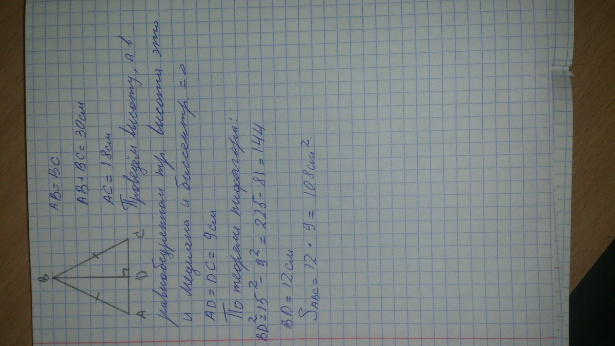 Решение задачи на фотографии, ответ 108 см^2