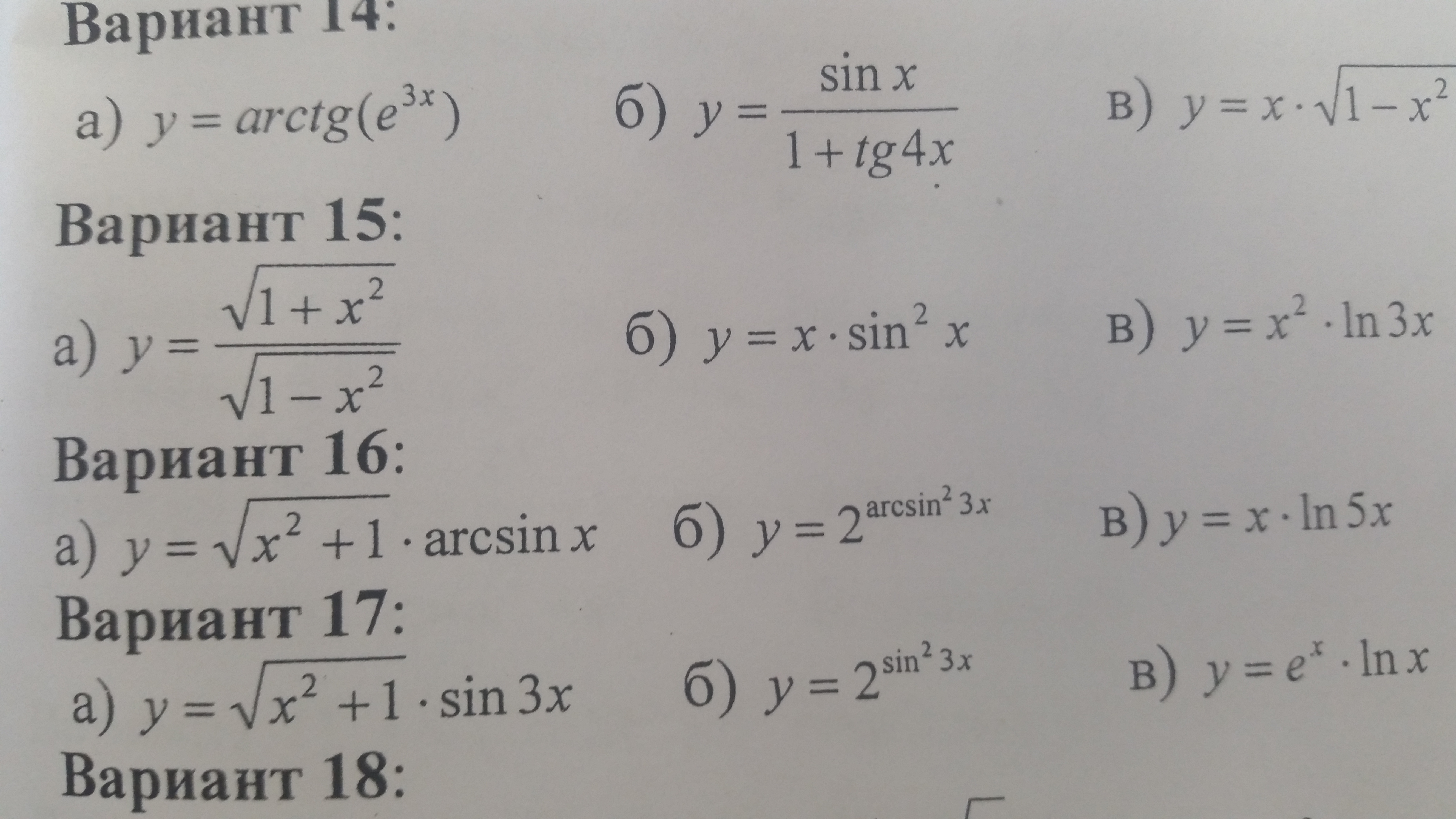 Найти производные функций. В пункте в)найти производную