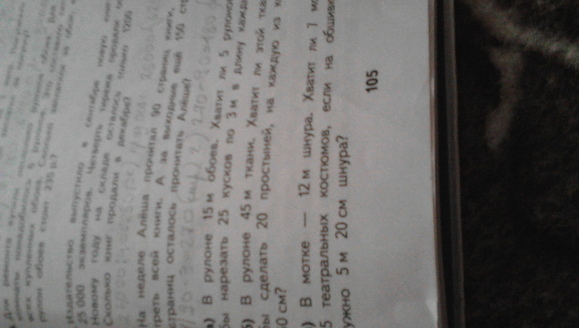 1)15×5=75 2)75:3=25 ответ: хватит 5 кусков рулона чтобы нарезать 25 кусков по 3 м в длину