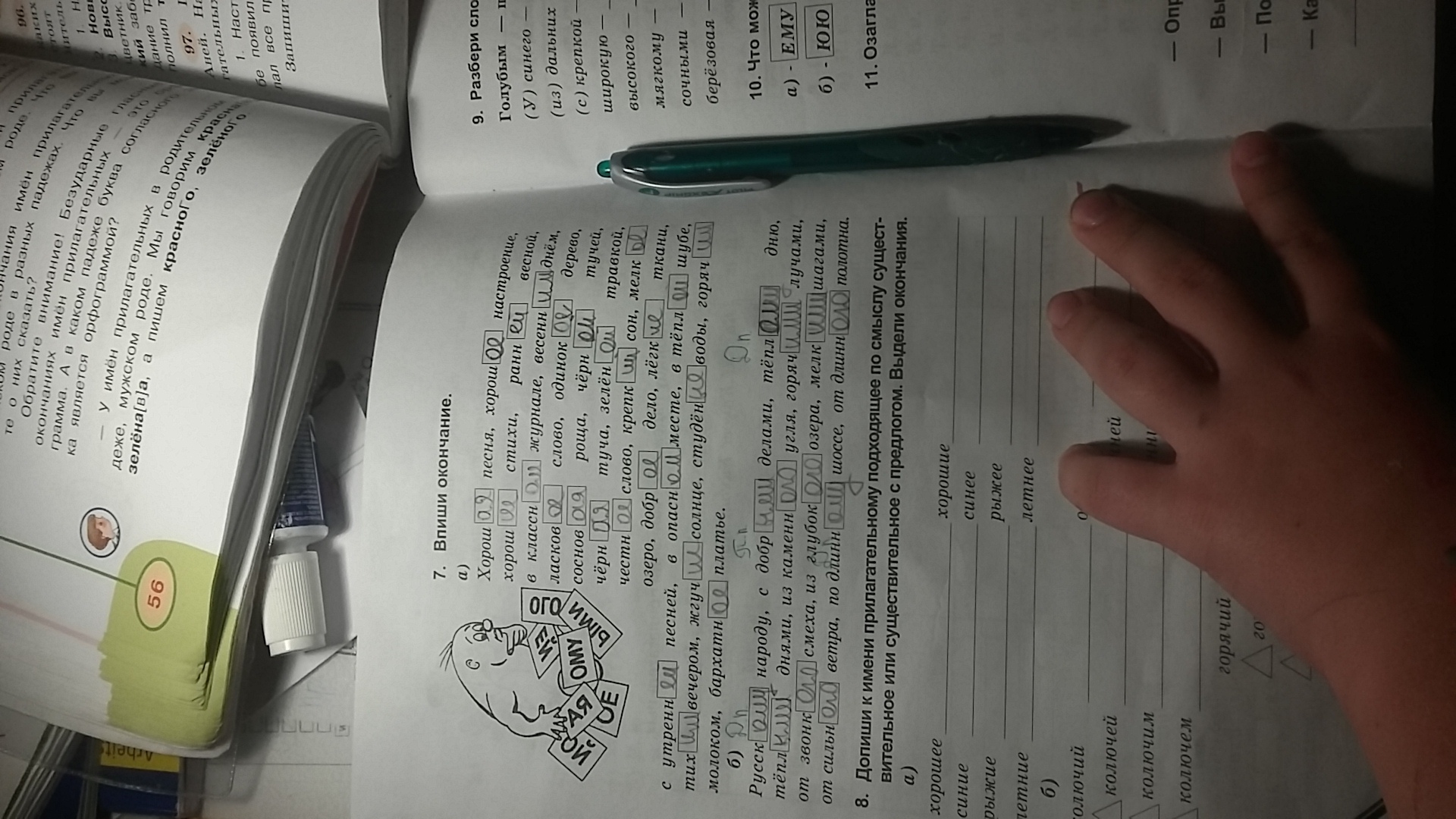какой род, число, падеж у имени существительного. такой род, число, падеж у прилагательного зависимого от существительного.