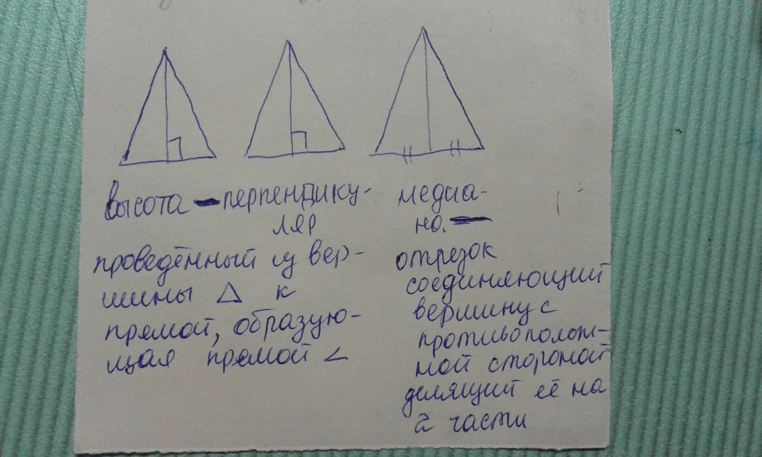 медиана -это отрезок ,соединяющий вершину треугольника с серединой противолежащей стороны