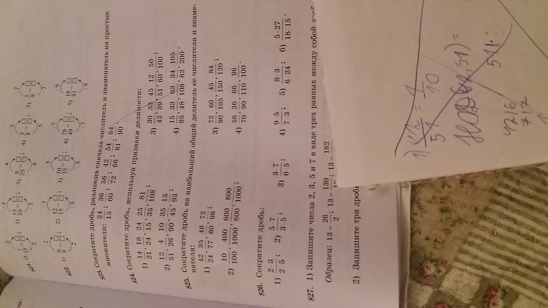 Сократите дробь на наибольший общий делитель ее числителя и знаменателя 1,3 столбик задание 825