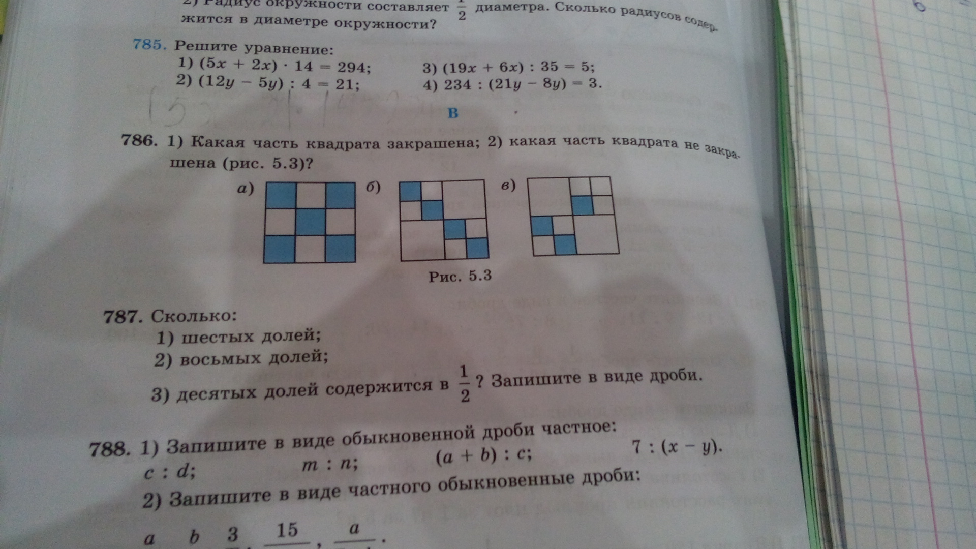 в)так же надо два больших квадрата разделить по четыре,и получается 13 не закрашены,а 3 закрашены