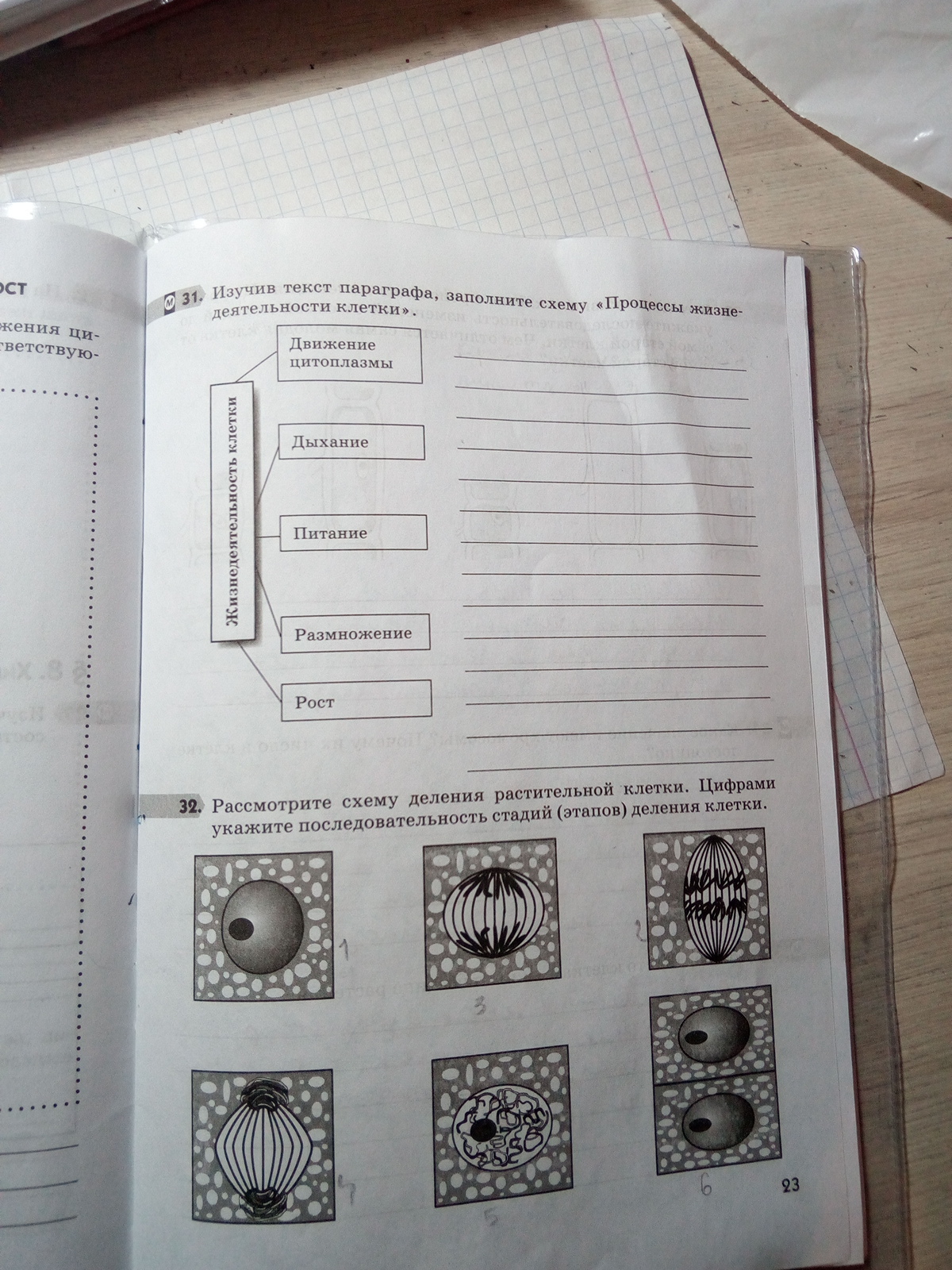 питание: получение питательных веществ для клетки;