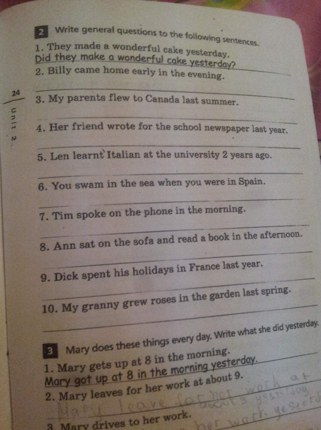 2)Did Billy come home in the evening?