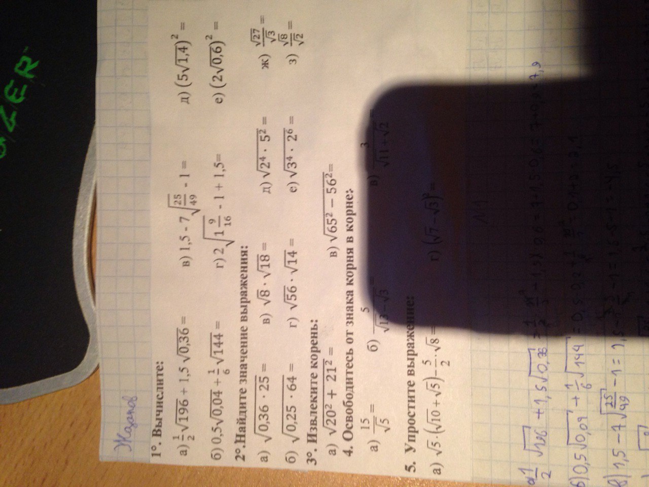 а) 1/2√196+1.5√0.36 = 14/2+1.5*0.6 = 7+0.9 = 7.9