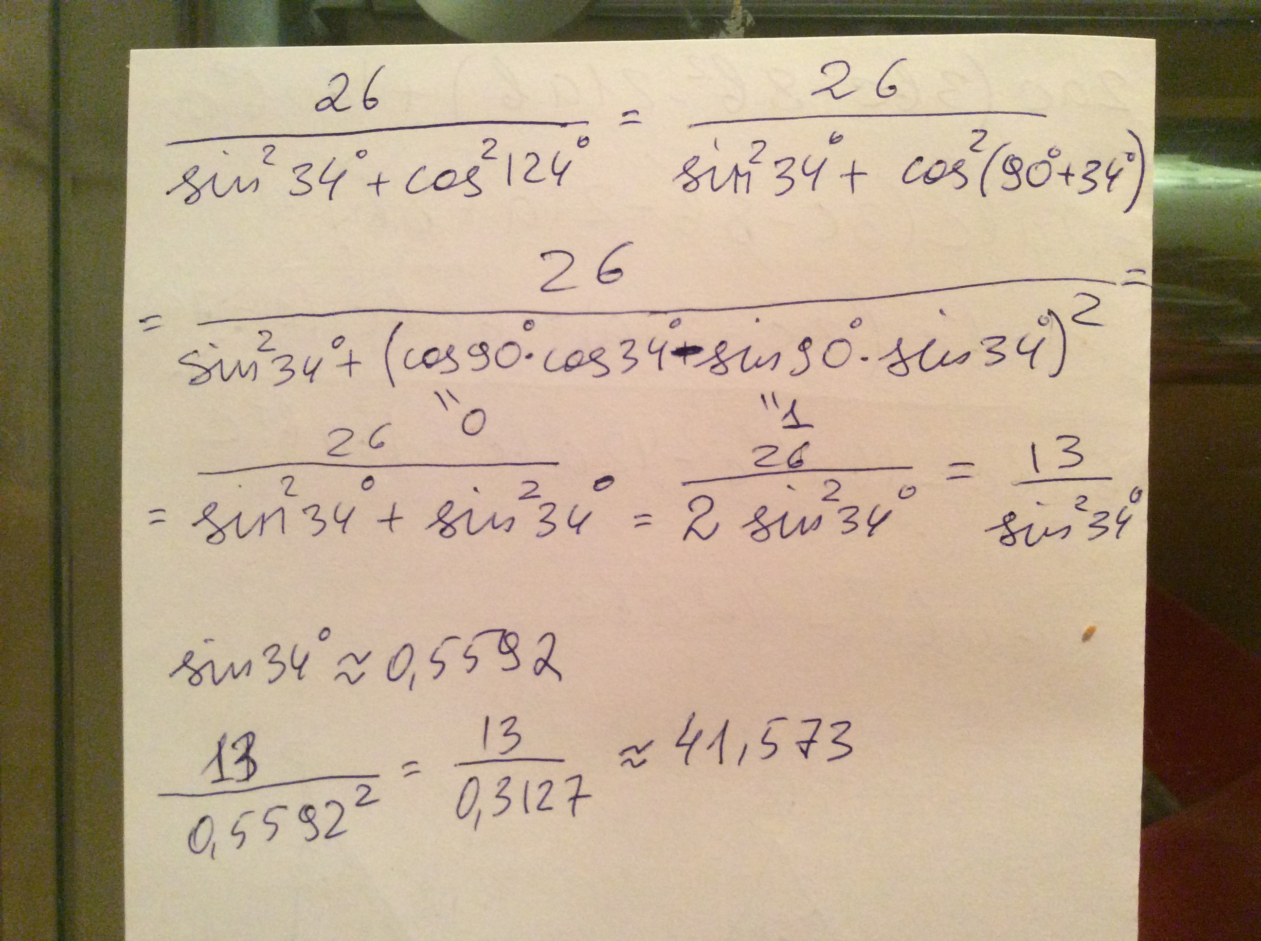 1. 26/sin^2 34+cos^2 124