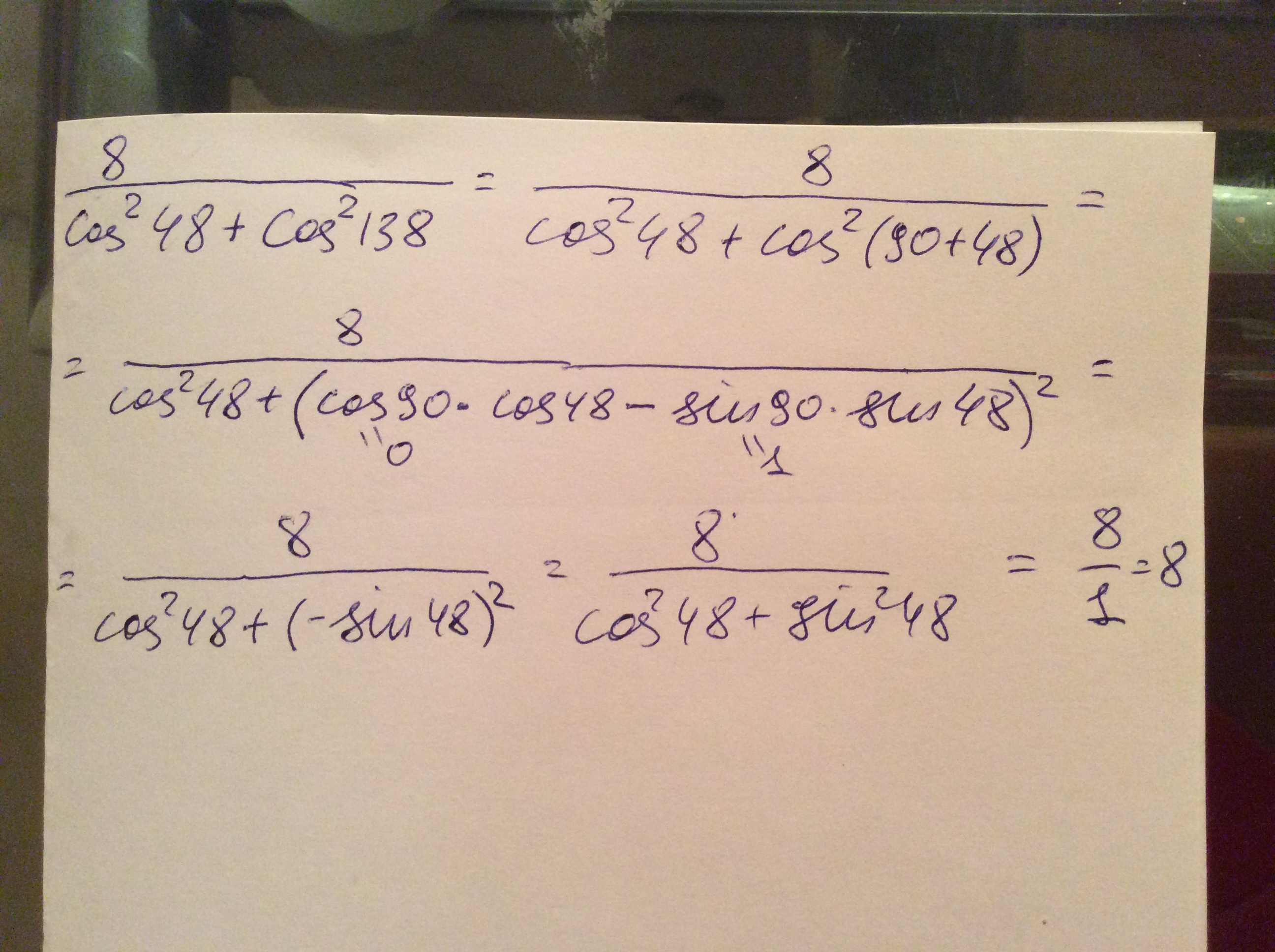2. 8/cos^2 48+cos^2 138