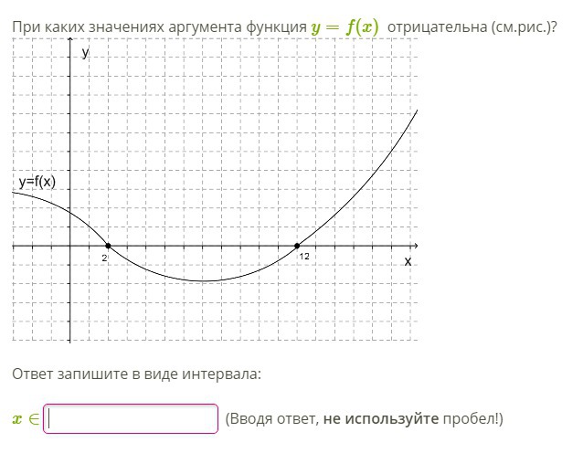 Функция у=f(x) отрицательна при х, принадлежащем промежутку (2; 12), не включая 2 и 12.