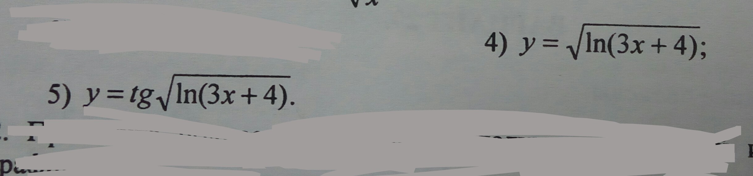 3. y=√ln(3x+4)