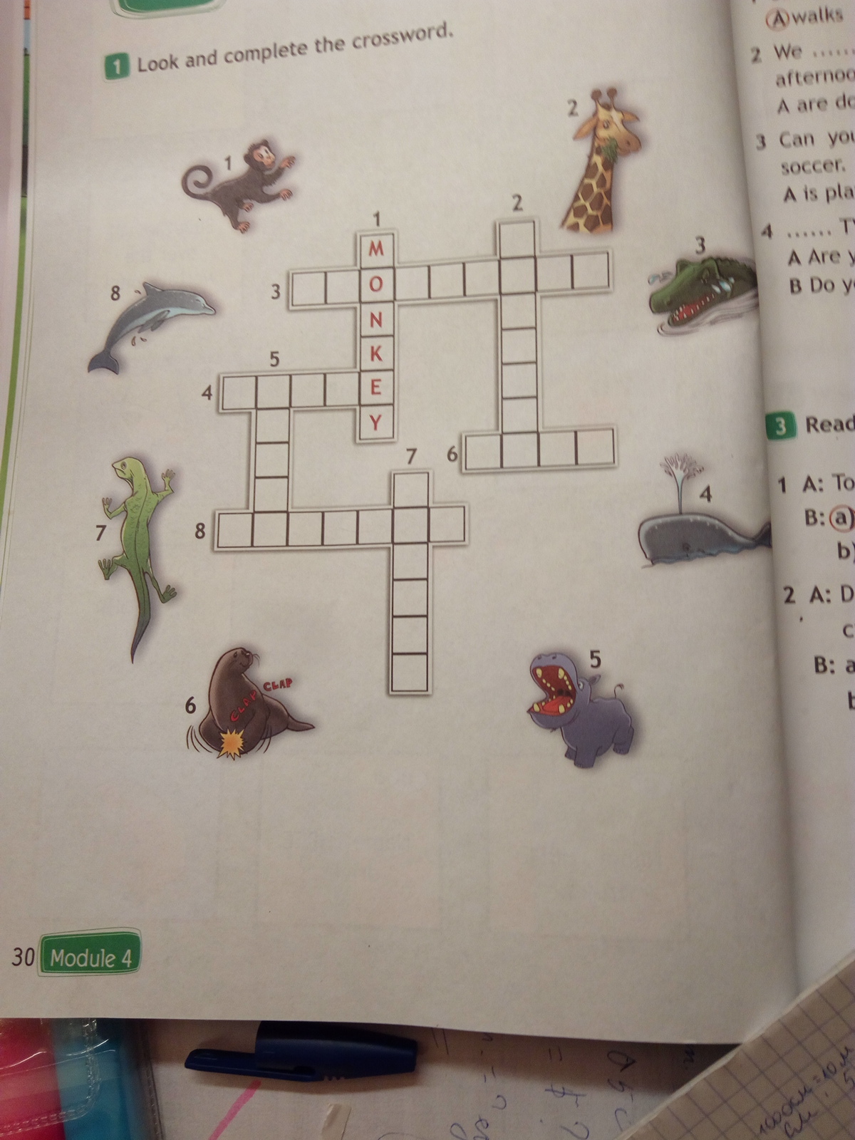 2 giraffe 3 crocodile 4 whale 5 hippo 6 seal 7 lizard 8 dolphin