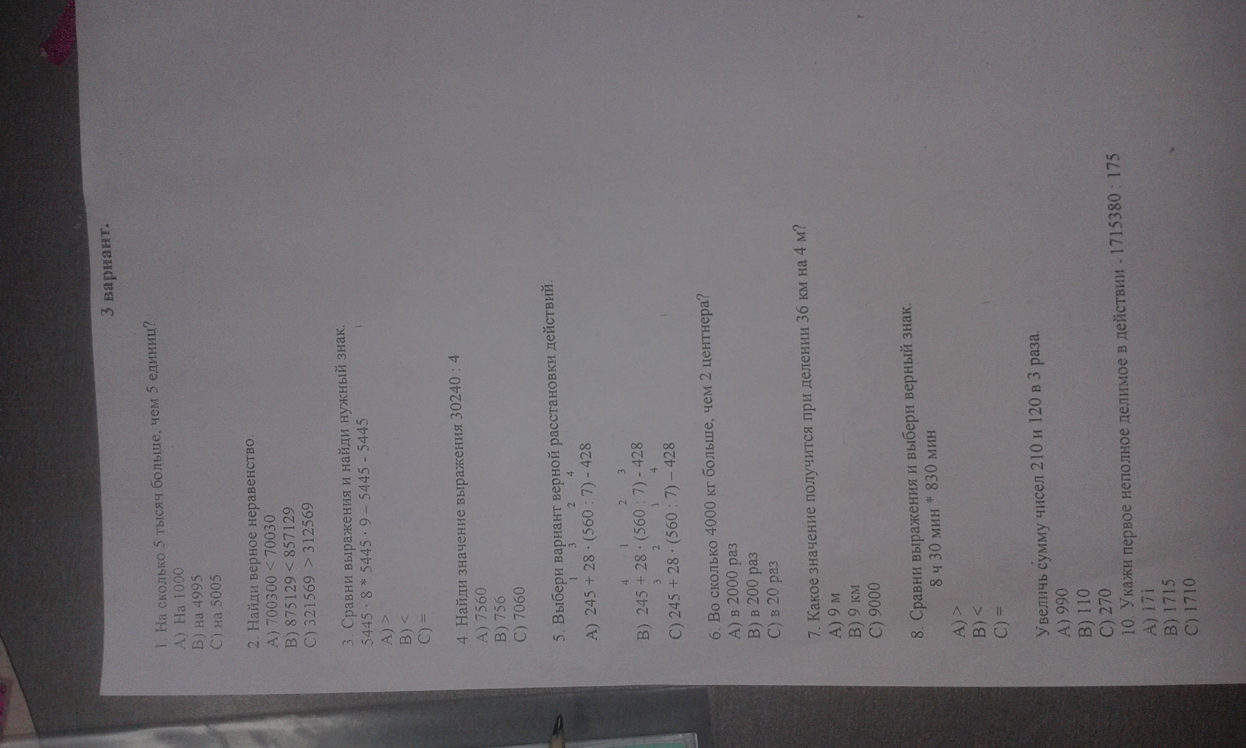 В пятом сначала в скобках делают, потом умножение , а только потом уже сложение - вычитание