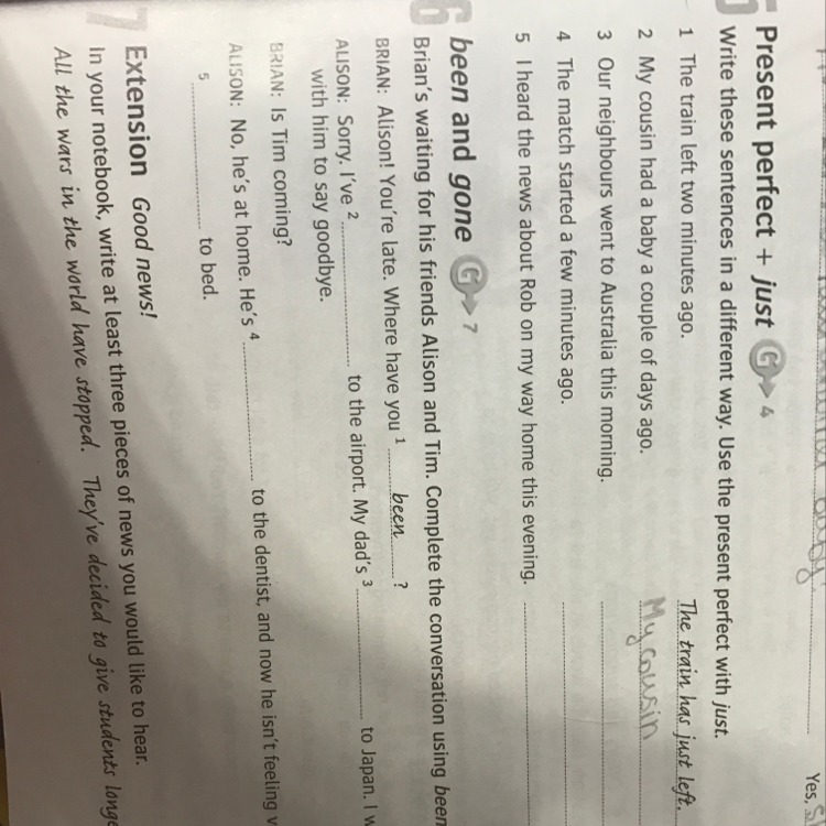 Просто переписываешь везде артикль(the) и существительное, потом пишешь has и just а потом глагол в 3-ей форме. Например:My cousin has just had a baby a couple of days ago.