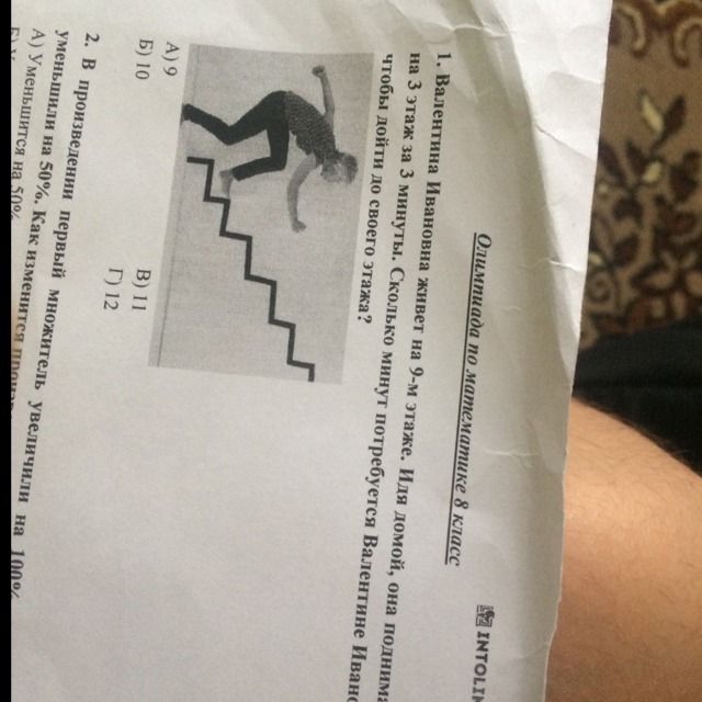 Валентина Ивановна живёт на 9 этаже. Идя домой, она поднимается на 3 этаж за 3 минуты. Сколько минут потребуется Валентине Ивановне чтобы, дойти до своего этада