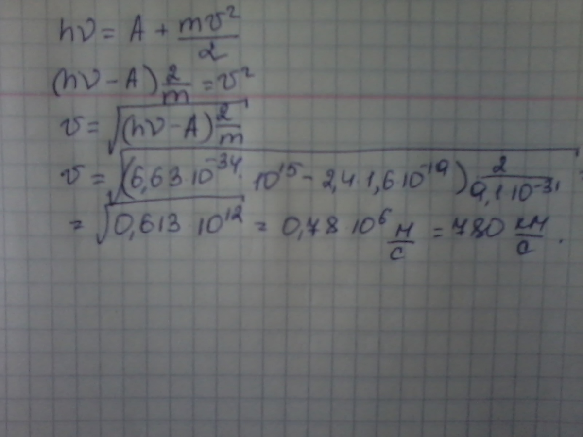 Применяем закон фотоэффекта: hv=Aвых+(mV^2)/2.