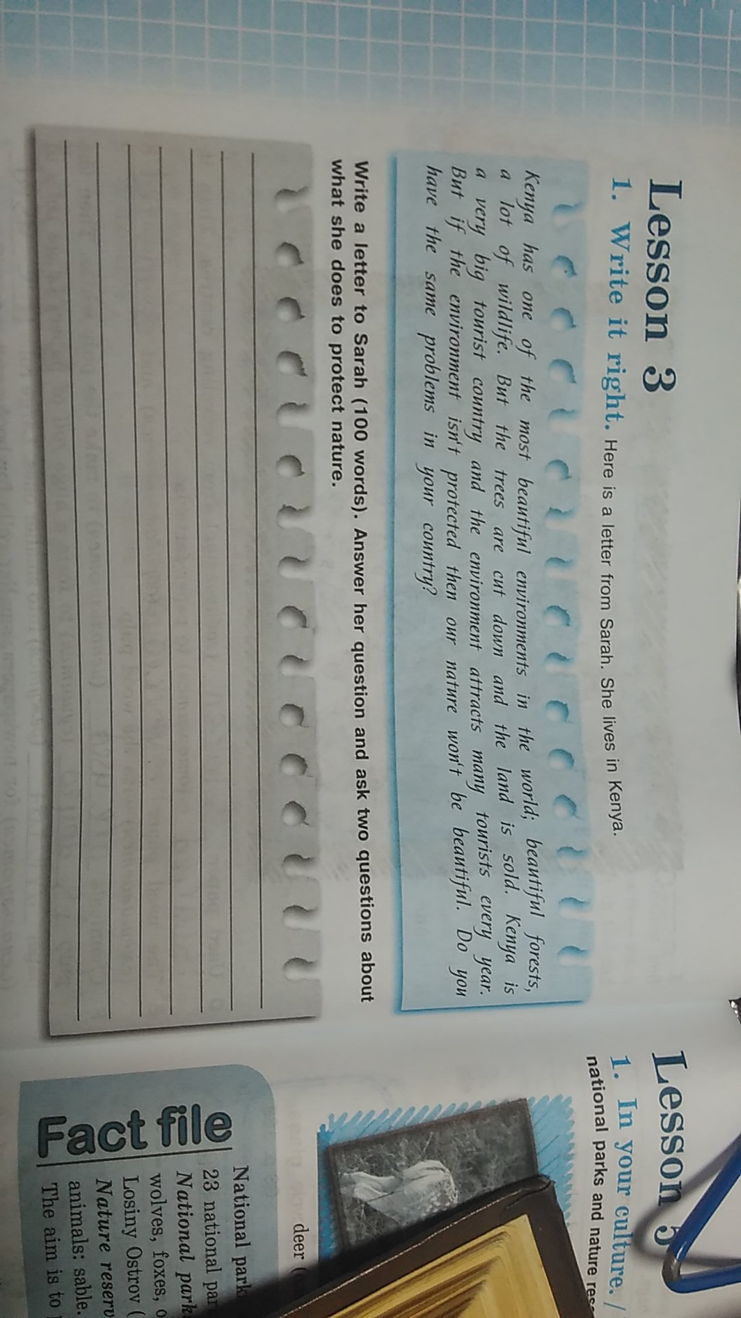 напиши письмо Саре (100 слов)ответь на ее вопрос и задай 2 своих почему "она защищает природу"