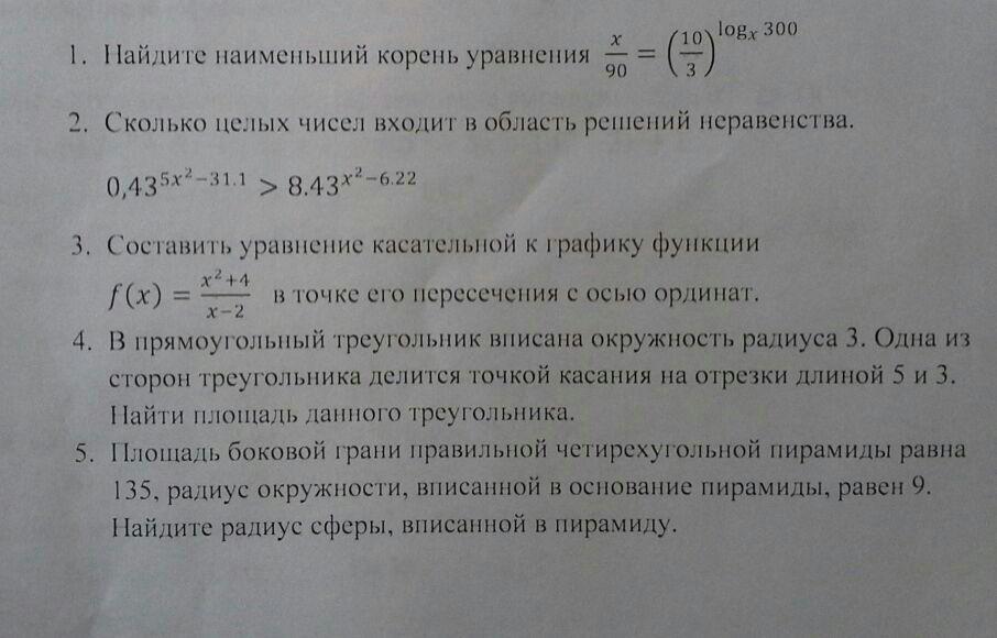 1) x/90=(10/3)^log(x) 300