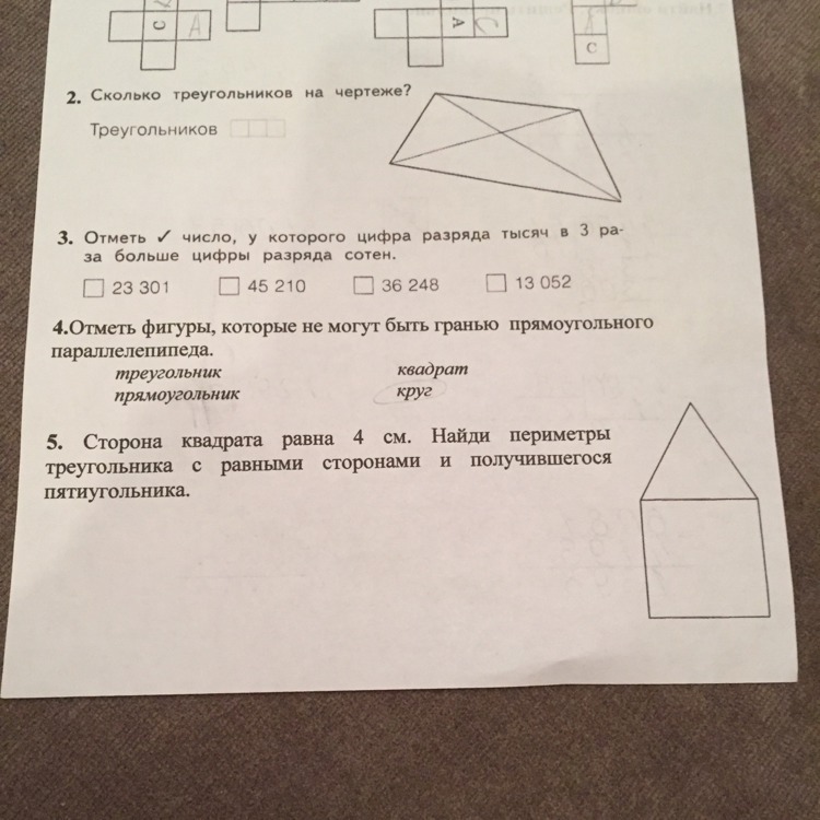 2. их тут 4 3. 3 вариант 5. 4+4+4+4=16. 4. круг