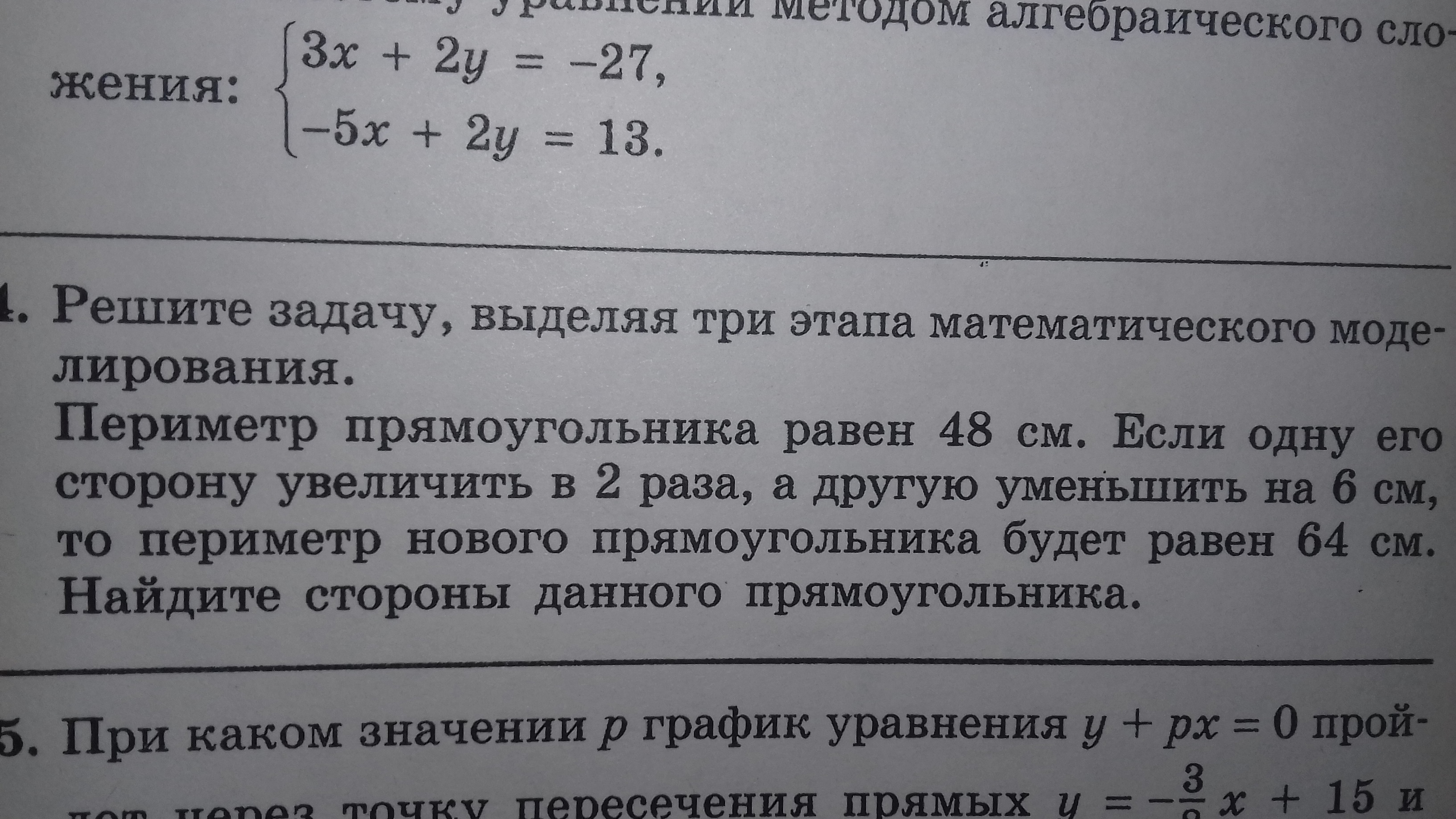 2а, (b-6) - новые размеры и периметр равен 2(2a+b-6)=64.