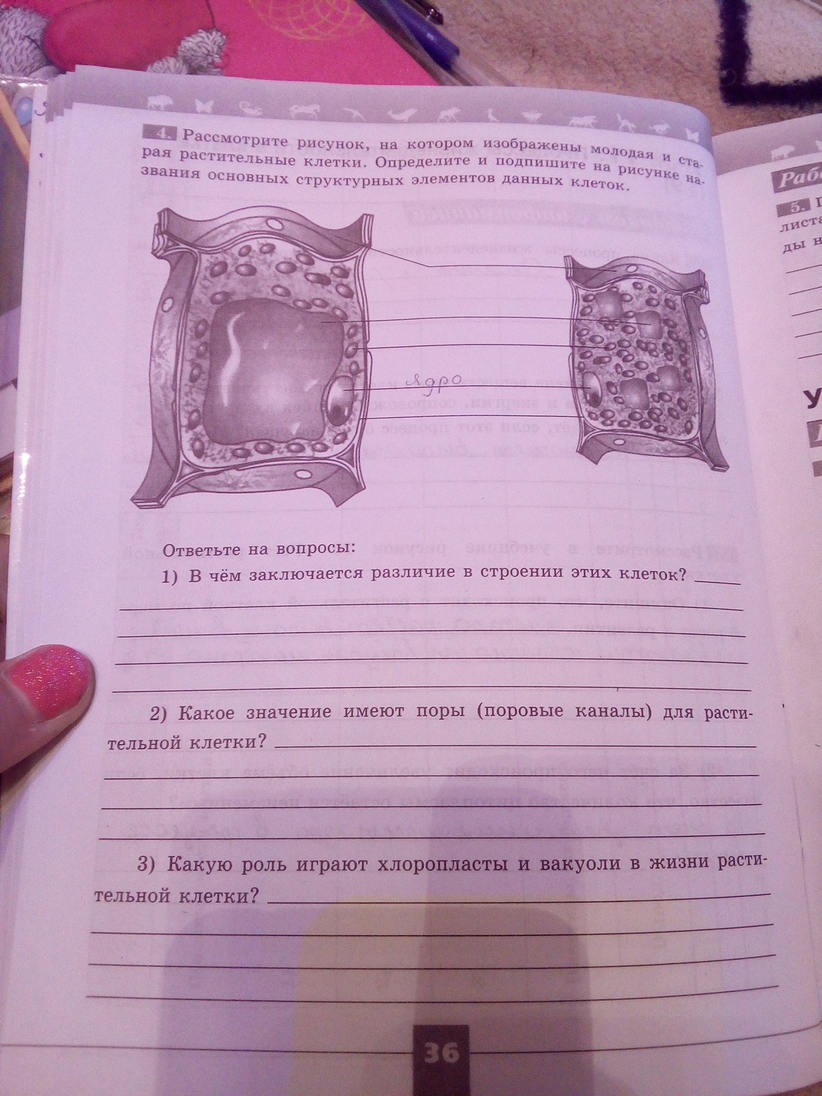 Рассмотрите рисунок на котором изображены молодая и старая растительные клетки Определите и Подпишите на рисунке названия основных структурных элементов данных клеток