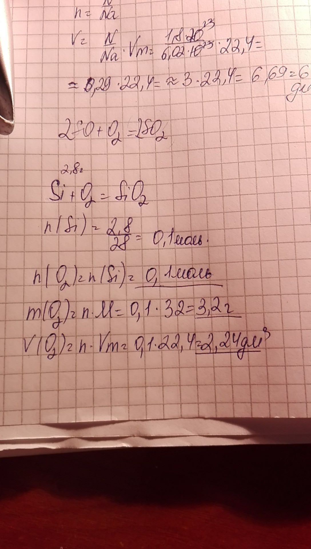 Помогитееее!!! вычислите массу,обьём и кол-во вещества кислорода необходимого для реакции с 2,8 Si