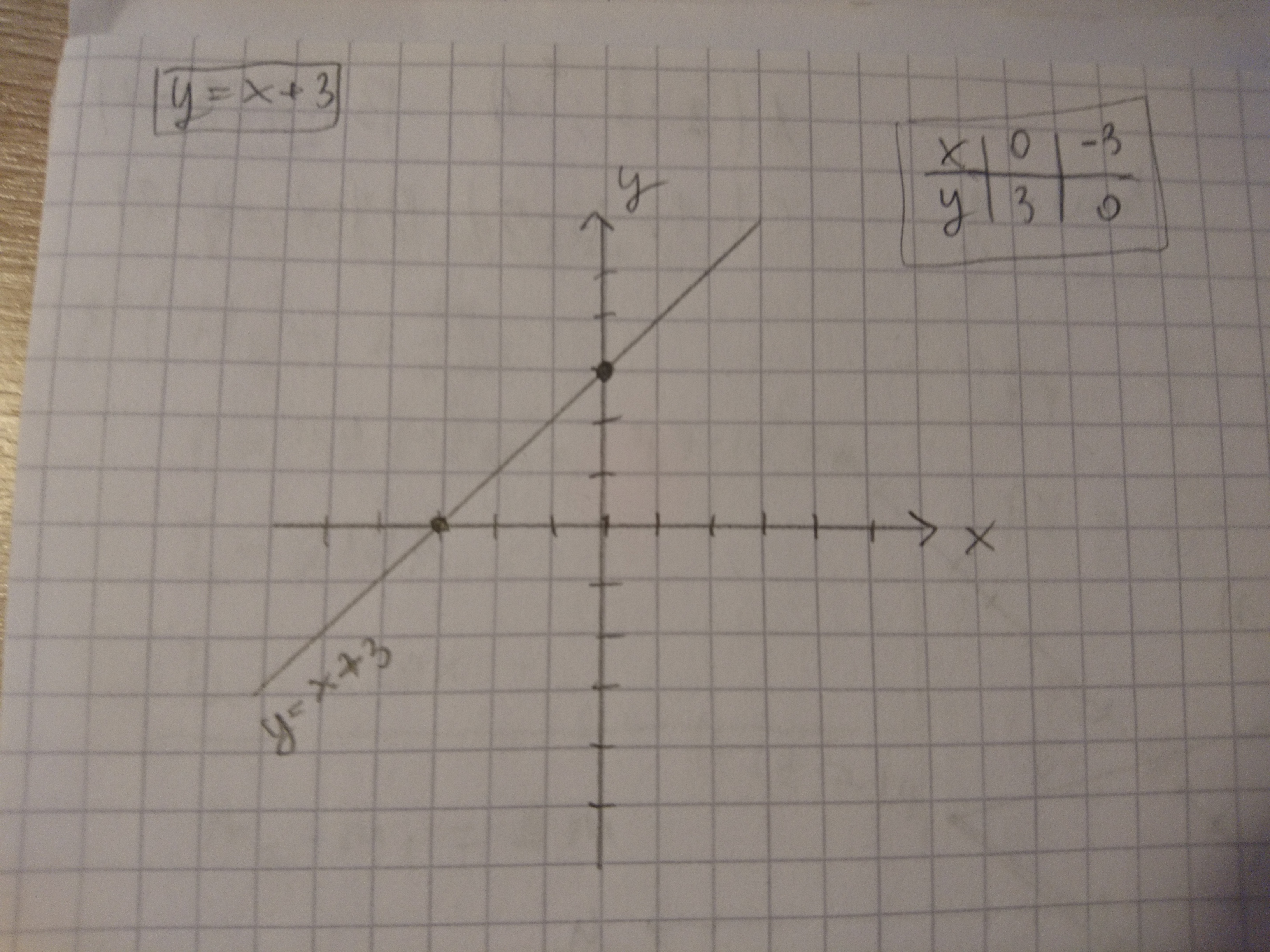 График, прямая, строим по двум точкам: X=0 => Y=3; X=-3 => Y=0
