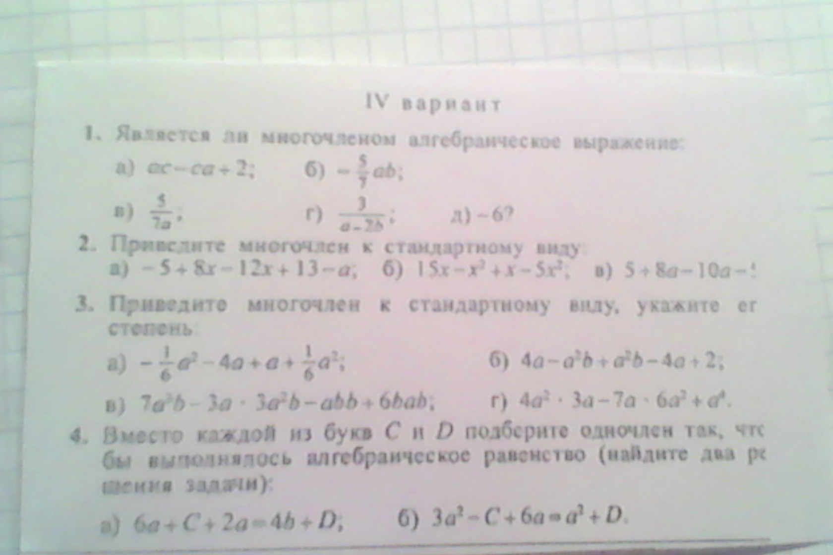 3 а) -3а степ 1 Б)2 степ 1 В)-2а^3б+5баб степ 4 Г)а^4-30a^3 степ 4