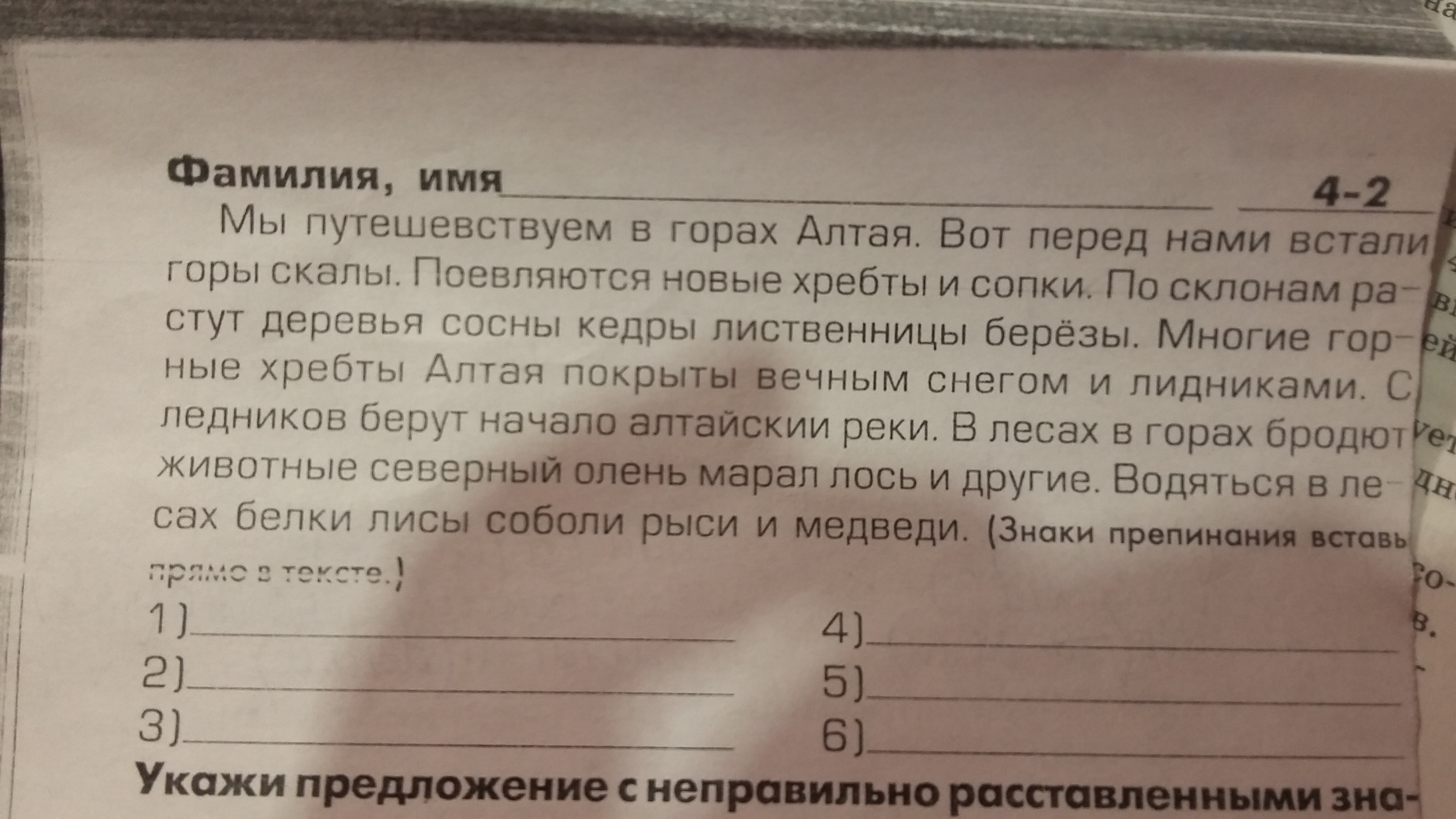 ПоЯвляются, деревья сосны, кедры листвнницы(запятые), лЕдниками, алтайскиЕ реки, бродЯт, в лесах, в горах(запятая после лесах), животные: северный морал, олень, соболь и другие.
