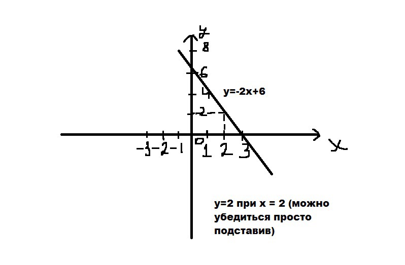 Постройте график функций y=-2x + 6.Укажите с помощью графика,при каком значении x значение y равно 2