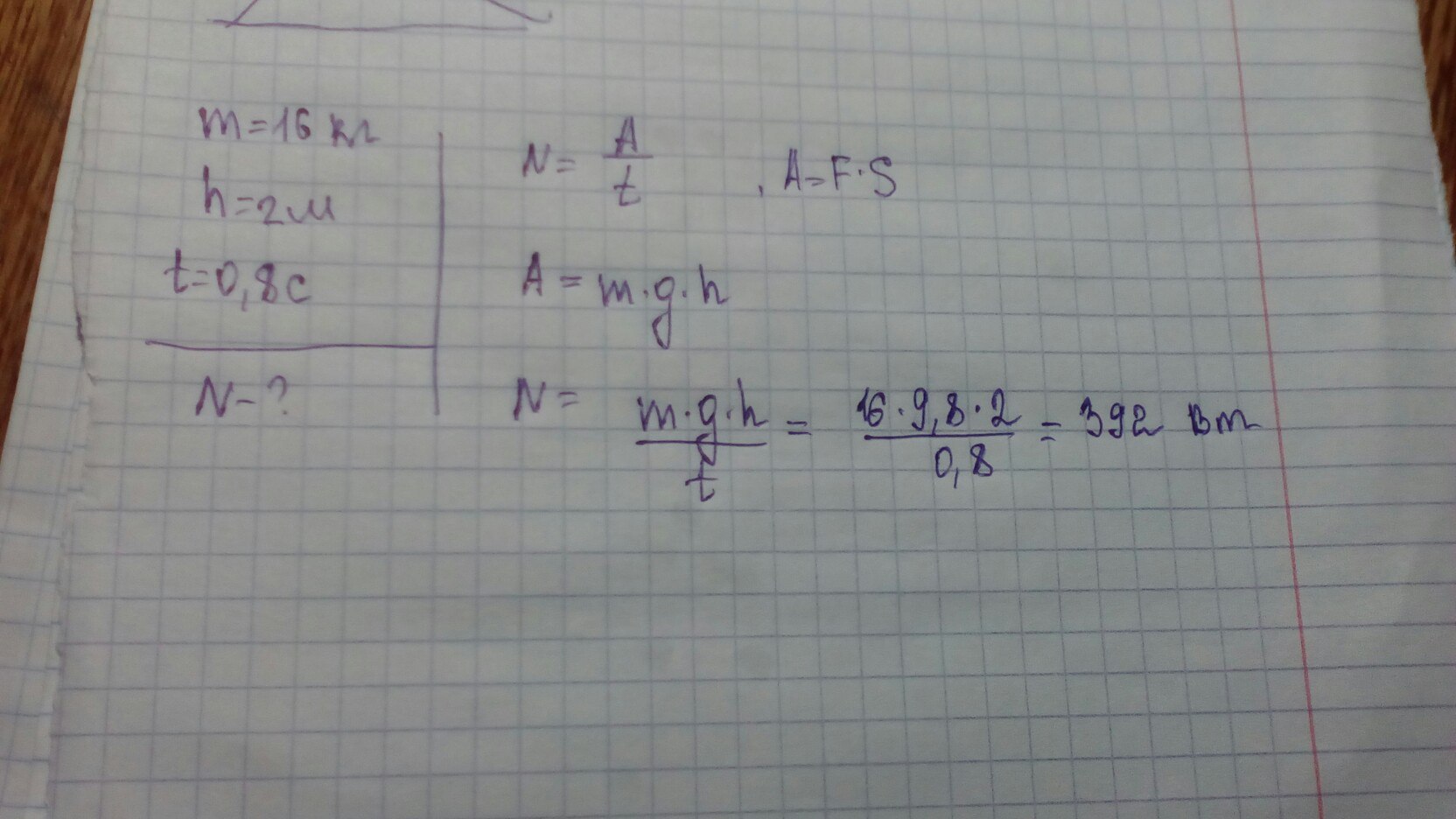 Спортсмен поднимает гирю массой 16 кг на высоту 2 м, затрачивая на это 0,8 с. Какую мощность при этом развивает спортсмен?