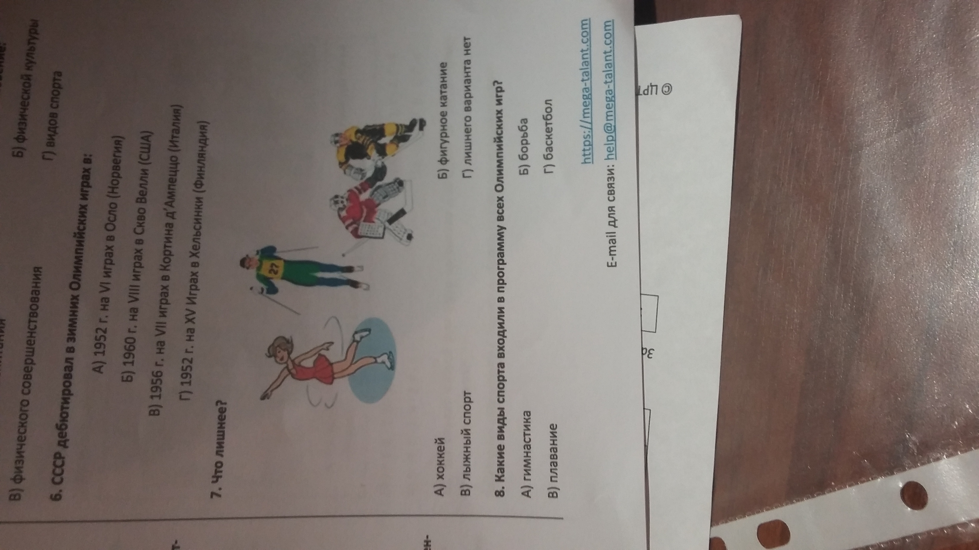 8 по-моему плаванье , а в 7 лыжи потому что на ни катаются по льду