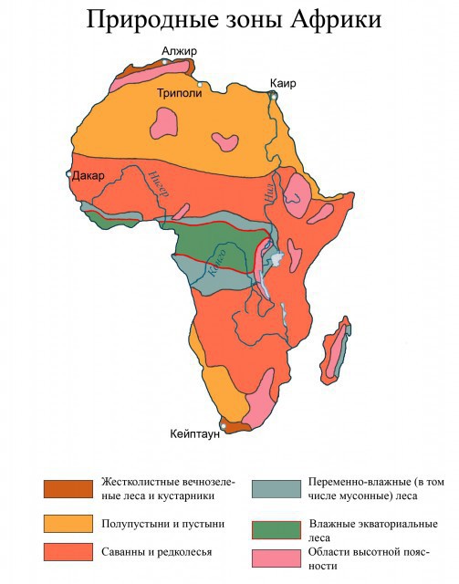 1.самый жаркий материк мира численость населения 1.216 миллиард,площадь 303000 км в квадрате.2.рельеф Африки это в особености состоит из обширных равнин ,пустынь и гор.3. климатические пояса-тропики,субэкватериалный,экватериалный климат.4.Река Конго вторая по длине и водности.5.природные зоны картинка.