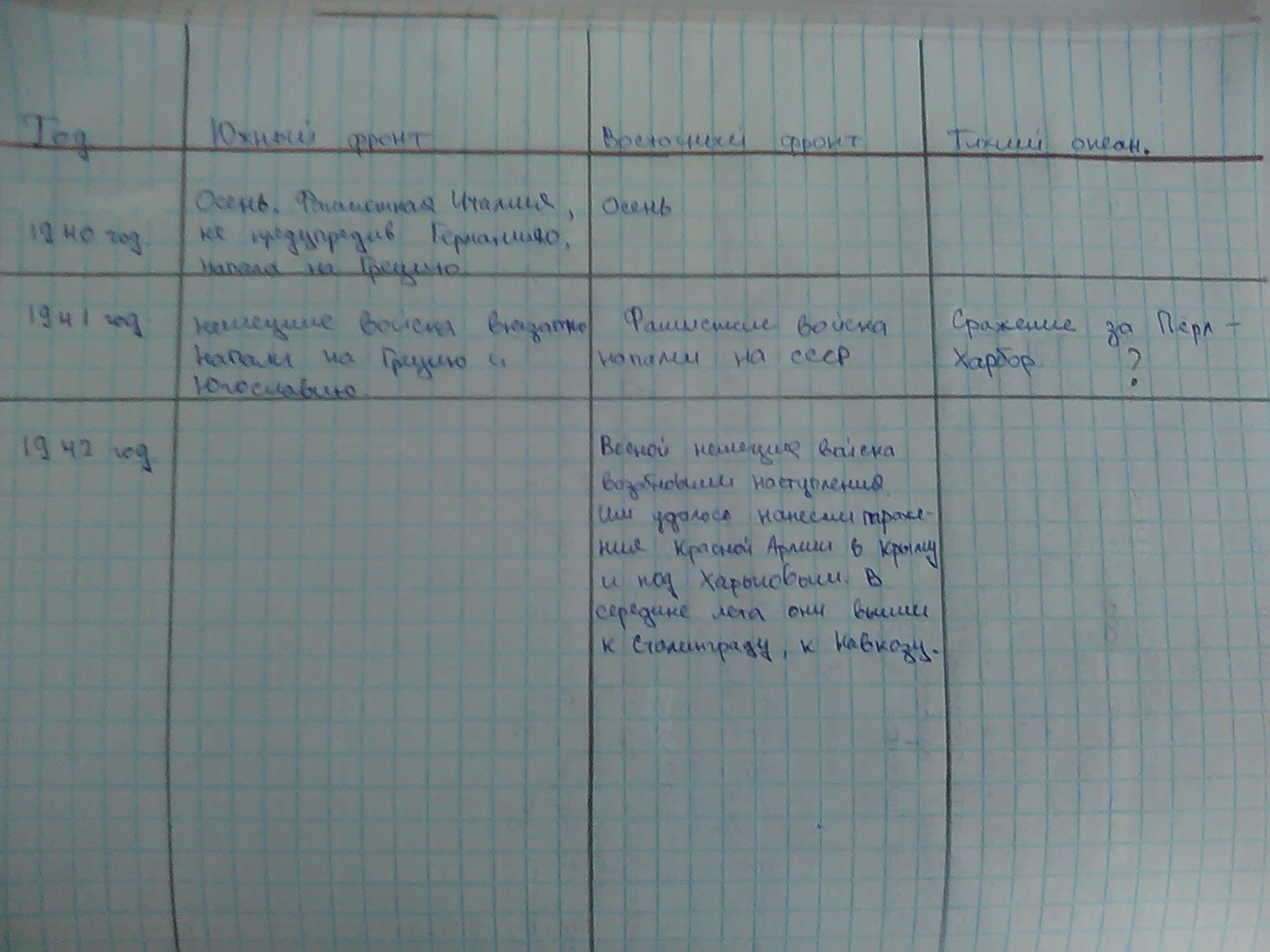 Помогите заполнить таблицу (немного я написал) по Второй мировой войне. Сама таблица на фото