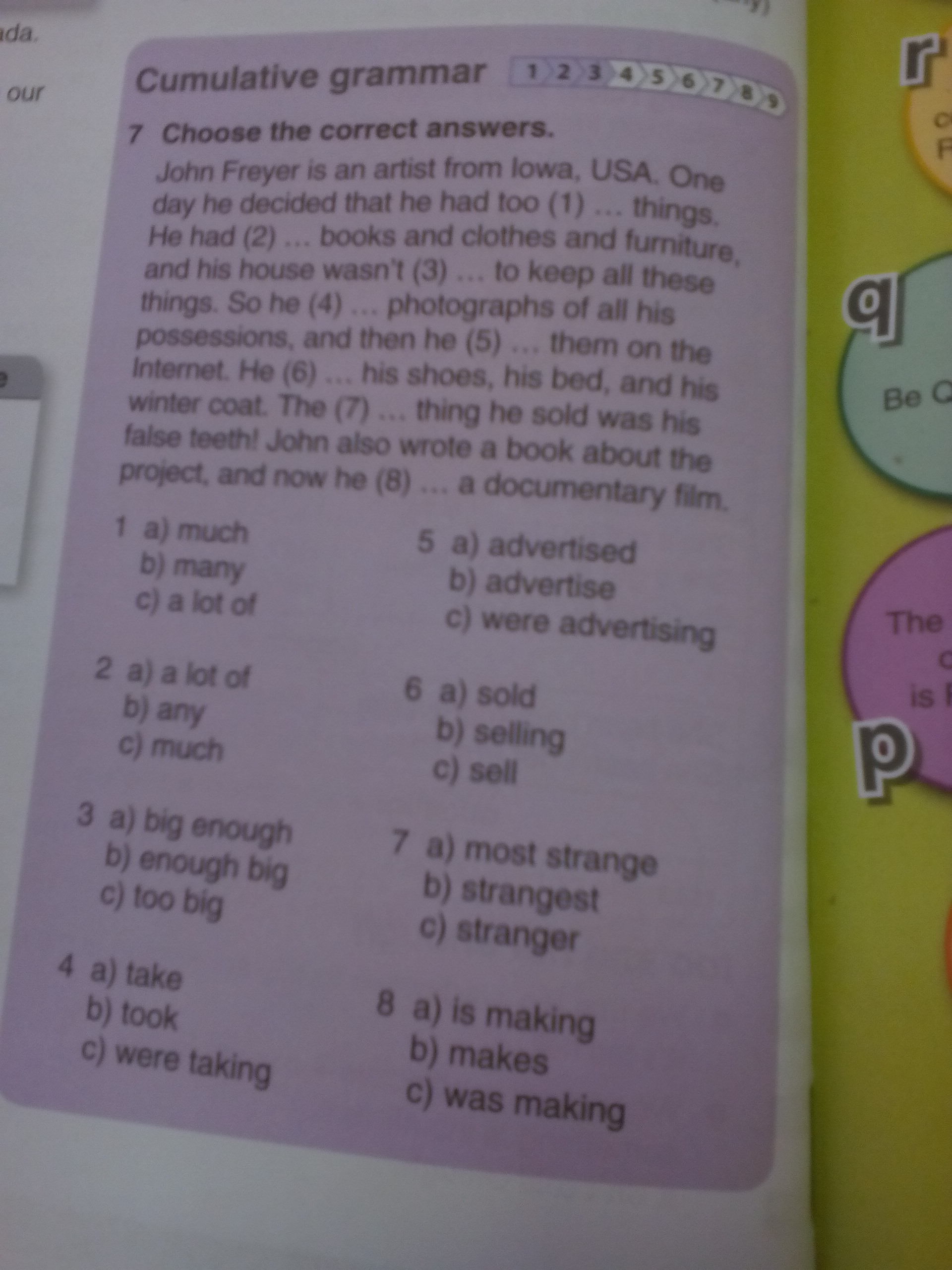 1b, 2a, 3a, 4b, 5a, 6a, 7b, 8a. Вроде так